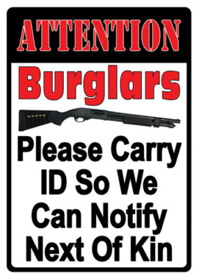 RIVERS EDGE EMBOSSED SIGN – 12″X17″ “ATTENTION BURGLARS”