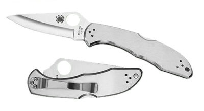 Spyderco C11P Delica 4 2.95″ Folding Drop Point Plain VG-10 SS Blade/ Stainless Steel Handle Includes Pocket Clip