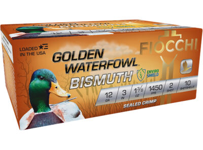 Fiocchi 123GB2 Golden Waterfowl Bismuth 12Gauge 3″ 1 3/8oz 2Shot 10 Per Box/10 Case