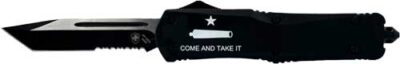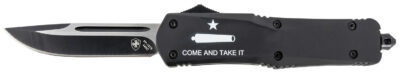 Templar Knife LCATI331 Gen II Come And Take It Large 3.50″ OTF Drop Point Plain Black Oxide Stonewashed 440C SS Blade, 5.25″ Black “Come And Take It” Aluminum Handle, Glass Breaker