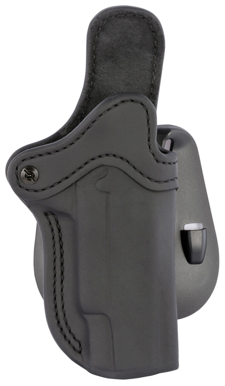 The 1791 Gunleather 1911 Belt Holster is best fitted for 1911’s without rails. It offers retention with barrel lengths from 4″ to longer. The sweat guard will protect your gun from tarnishing and act as a comfortable barrier between you and your hammer preventing any gouging into your side. When wearing this outside-the-waistband belt holster you will find it holds your gun tight to your body offering reliable and comfortable carrying all day long. Features an open top design for quick draw, multi-fit design with reinforced stitching that’s handcrafted to accommodate a wide range of firearms. Includes a beveled steel clip for comfort and the safest retention. Compatible with 1911 4″ & 5″ up to Half Rail; Browning HP; Colt 1911 4″ & 5″; Keltec PMR 30; Kimber 1911 5″; Rock Island 1911 5″ Rock Series; Ruger SR1911; Sig Sauer STX; Springfield TRP and similar frames.