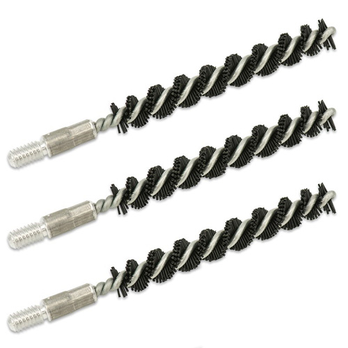Unlike phosphor bronze bristled brushes, our premium Proof-Positive Nylon Bore Brushes are strongly recommend when using fast acting copper removing cleaners such as our Eliminator Bore Cleaner or Cu+2 Copper Remover. This is due to the fact that traditional phosphor bronze brushes contain over 90% copper in their composition and will turn patches blue when in contact with most copper removing cleaners. With barrel safe, non-brass cores and threads Bore Techs Proof-Positive Nylon Bore Brushes are not affected by copper removing cleaners and will eliminate blue patches and the false indication of copper fouling that is associated with traditional phosphor bronze brushes.