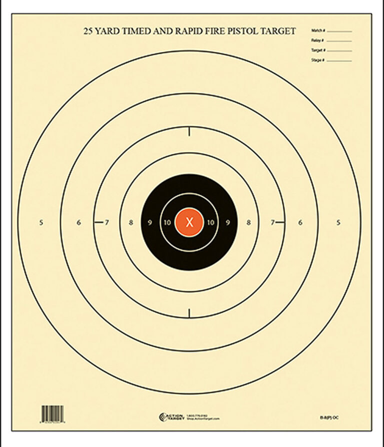 Action Target B8POC100 Competition NRA Time & Rapid Fire Bullseye Paper 25 yds 21″ x 24″ Black/White 100 Per Box