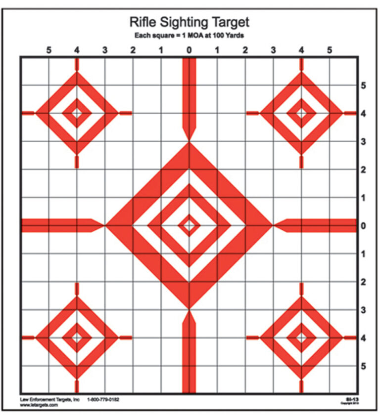 The target allows for extremely accurate & simple scope adjustments. The unique target grid is setup that at 100 yards each MOA (minutes of angle) is the “true” 1.047 inches vs most targets which use a generic 1″ gird. The 1.047″ grid allows for more accurate adjustments. It dimensions are 14″ x 15″.