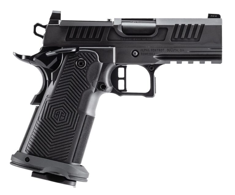The AF1911 Romulus delivers full-size performance with Alpha Foxtrot’s modern 2011-style engineering. Featuring a black polished DLC finish on the frame and slide; Bull barrel; Night Fision sight; Picatinny rail; ambidextrous thumb safety; flared magwell and is RMSC/RMR optics cut. Includes MOS adapter plate, RMSC and RMR plate, 17rd and 20rd magaine.