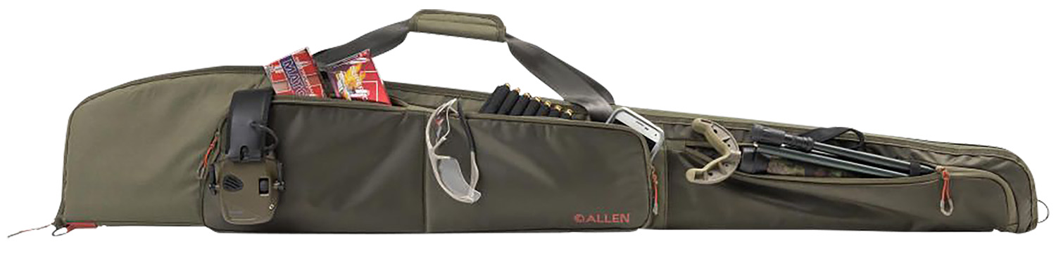 The Collins Shotgun Case by Allen Company provides ample storage. The case features 3 exterior zippered compartment to store extra shells, choke tubes, or other shooting essentials. The large front pocket is divided into two sections for centralized access. Pockets are made of a ripstop material that offers a snag and tear free, durable material. Lock up your firearm by pairing the zippers and the metal D-ring with a lock.