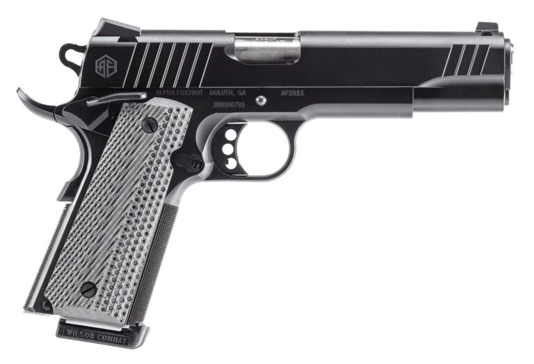 The AF1911 Standard stays true to the heritage of the 1911 while adding Alpha Foxtrot’s modern craftsmanship. Chambered in .45 ACP, the full length barrel maximizes sight radius, accuracy and control delivering the smooth recoil and trusted performance that made the 1911 legendary. Features a black QPQ coating finish; front and rear white dot Novak sight and serrated grip.
