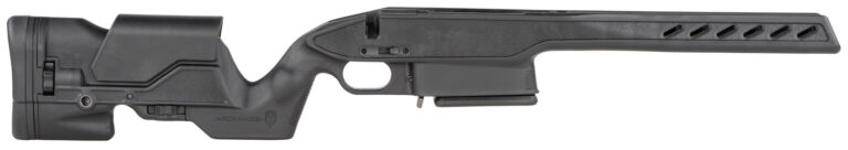 The Archangel AAS111MLA is an aluminum pillar bedded, fully adjustable precision stock for Savage Model 1100/111 long action rifles (and variants) chambered in cartridges based on the 300 WIN Mag with a maximum overall length of 3.410″. Converts all models to a double column TYPE C detachable magazine configuration. This weight reduced and slimmed modern precision stock features an ergonomic gooseneck style grip with palm swells and a locking storage compartment. The comfortable, ventilated forend is contoured and textured for positive retention and features two M-Lok slots on the bottom for mounting accessories such as a rail, bi-pod or light. The click adjustable cheek riser, with a 1.25″ travel in .05″ increments, assures a proper fit to each individual. The buttstock features a textured, contoured recoil pad and off-hand pressure hook. The varmint-barrel sized barrel channel accepts and free-floats most barrel contours. Also, features three steel QD style flush fit hard points for QD style sling swivels (sling swivels not included). The AAS111MLA is impervious to weather and will withstand all standard gun solvents and oils. Includes one TYPE C- Archangel Magnum Caliber .300 WIN, 7mm Rem Mag 6rd with a 2rd limiter black polymer magazine (AAMLA5), a traditional style sling stud (not installed) for using a standard sling swivel on the forend or for mounting Harris style bipods, Hex head action screws and Allen wrench. Made in USA.