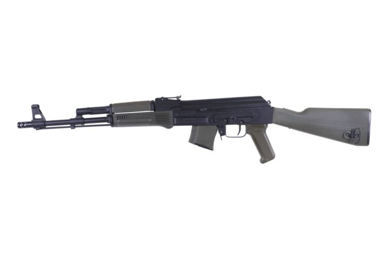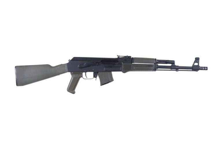 Arsenal SAM7R-62 7.62x39mm Semi-Automatic Rifle with OD Green Furniture and OD Green 10rd Magazine. Includes AK-351 Muzzle Brake milled and forged receiver FIME Group enhanced fire control group 16.3″ chrome lined hammer forged barrel 14x1mm left-hand threads removable muzzle brake cleaning rod bayonet lug black polymer furniture intermediate length buttstock scope rail one OD Green 10 round magazine sling oil bottle and cleaning kit.
