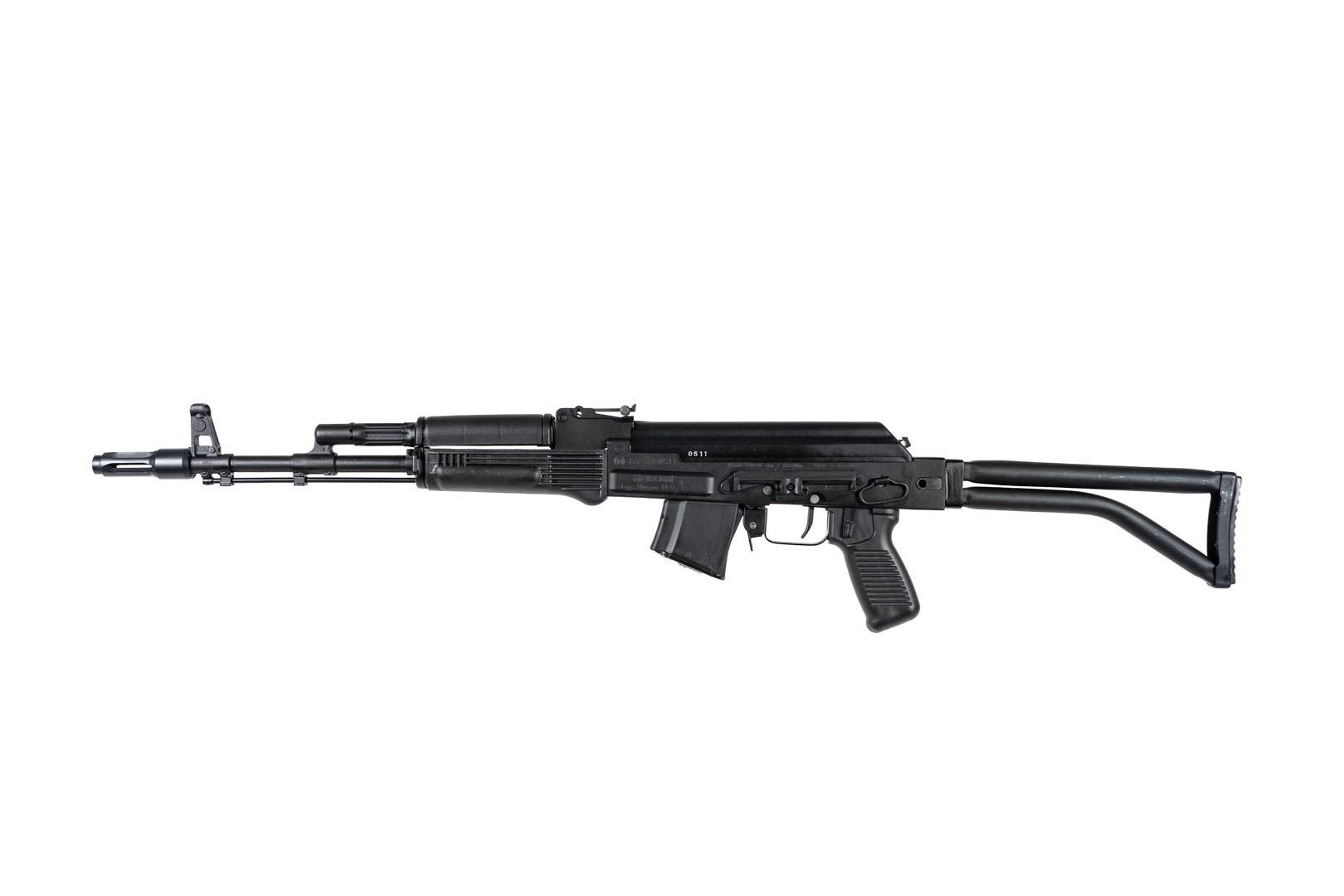 Arsenal SAM7SF-84M 7.62x39mm caliber Semi-Auto Side-Folding AK47 rifle. Bulgarian milled and forged receiver enhanced FCG chrome lined hammer forged barrel 24×1.5mm right hand muzzle threads AK-133S flash hider bayonet and accessory lugs right-side folding Bulgarian tubular buttstock black polymer pistol grip Bulgarian handguards stainless steel heat shield ambidextrous safety lever scope rail sling cleaning kit and rod oil bottle and one 10-round magazine.