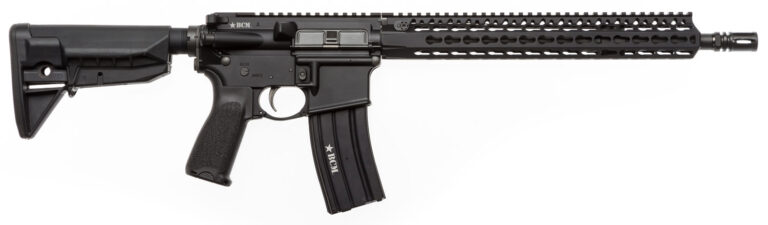 BCM RECCE 14 KMR-A Carbine features a USGI chrome lined steel barrel with a manganese phosphate finish with a barrel length of 14.5″ with Permanent MOD 1 Compensator 16.1″, aluminum receiver with a hard-coat anodized finish, M4 Feed Ramp Barrel Extension, M4 Feed Ramp Flat Top Receiver and fire controls marked SAFE and SEMI. Includes one magazine, cable lock, USGI Manual and FET. Made in the USA.
