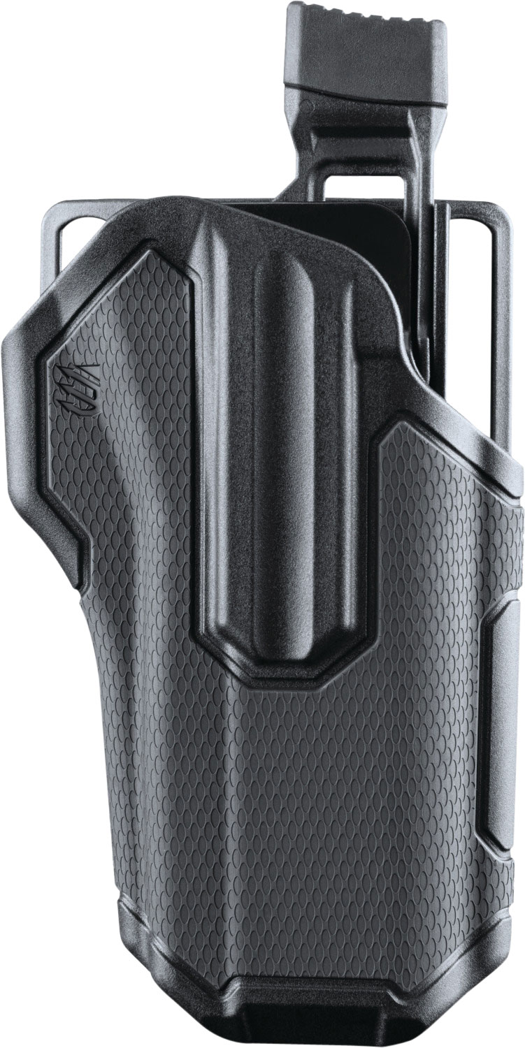 The Blackhawk’s Omnivore multi-fit holster accommodates more than 150 styles of semi-automatic handguns. The active retention mechanism locks onto a proprietary rail attachment device, not the frame of the handgun for the non-light bearing model. Its instinctive thumb release disengages the locking mechanism from the rail attachment device when drawing the handgun. Fits most non-light bearing semi-autos with rails.