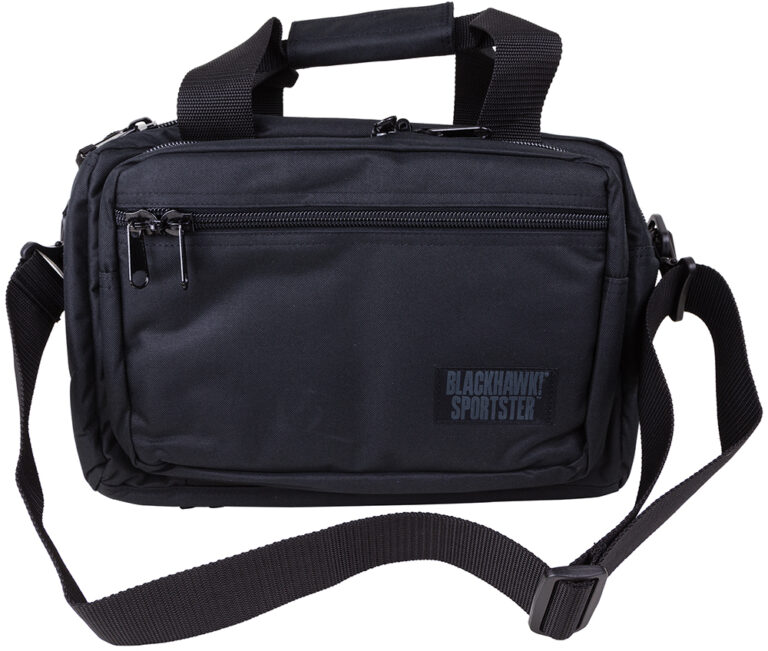 The Sportster Deluxe is made with an incredibly durable 600 denier polyester material with a thick PVC laminate for stability. This bag features three large dual-zippered compartments and one slash pocket. It includes one removable gun rug pistol pouch. The inside is made with a dual density open cell foam material and a closed-cell outside foam to protect against impact with integral pockets to hold two handguns The over sized heavy duty zippers are self healing.