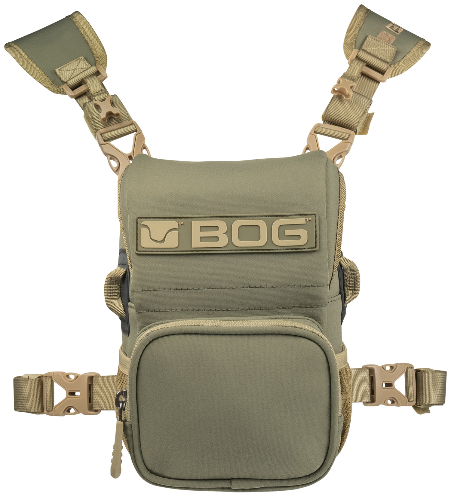 Limited Lifetime Warranty Backed by BOG. Weighs 15oz, Softshell Construction – With Fleece Lining for Quiet Protection. YKK Zippers – Provide Dependable & Quiet Access. Adjustable & Detachable Padded Harness – With Heavy-Duty Buckles for All-Day Comfort. Oversized Rangefinder Pocket – Fits Most Handheld Rangefinders. Fits up to 15 x 56mm Binoculars – For Universal Hunting Application. Back Zippered Mesh Pocket – For Small Phones, Ammo or Licenses. 2 Side Elastic Pouches – For Small Gear Storage. Includes a Micro-Fiber Lens Cloth – To Keep Optics Clean. Hypalon-Reinforced Cinched Molle Straps – For Additional Gear Securement