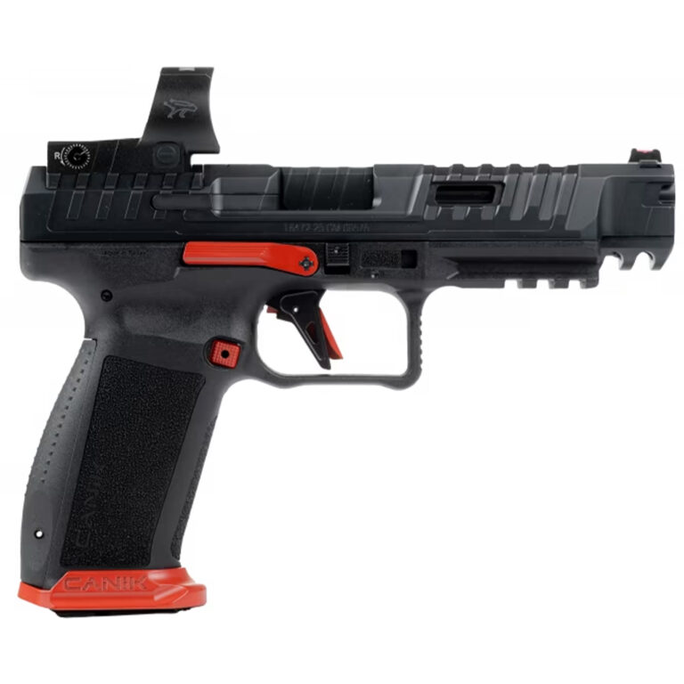CANIK SFx Rival 9mm Red 18RD SFx Rival Full Size Frame 9mm Luger 18+1 5″ Black Optic Ready/Ported/Serrated Slide, MeCanik M03 Red Dot Black w/Red Accents Polymer Frame w/Picatinny Rail