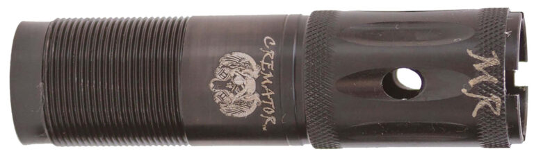 Carlson’s Cremator Choke Tubes feature our new Triple Shot Technology and is offered in close mid and long range constrictions. TST is a series of three graduated rings in the taper section of the choke tube, that allow a more gradual transition from the shotgun bore to the final constriction. The Cremator offers reduced pellet deformation, less flyers, more dense patterns, wrench-less installation, quick removal and muzzle protection. Made in the USA. *NOTE- Optima HP and Remington Pro Bore Long Range cannot be used with any steel shot larger than #2.