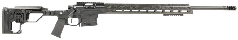 The Modern Precision Rifle is an ultra-lightweight chassis rifle designed to break with tradition. Beyond the folding stock the complete package is well equipped with a target contour Christensen Arms carbon fiber barrel, carbon fiber comb, free-floating carbon fiber handguard and 20″ MOA rail. The action and stainless steel side-baffle muzzle brake are finished in Black Nitride for a sleek look. The Modern Precision Rifle weighs in starting at 6.9 pounds and is backed by the Christensen Arms Sub-MOA Guarantee.