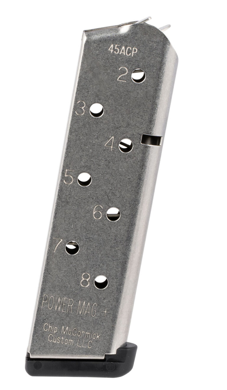 The Power Mag Plus offers all the quality, reliability, service life and customer satisfaction of the CMC Power Mag 1911 Series magazines. The unique Power+ follower accomplishes the same tasks as the Power Mag follower but in a different way. The follower remains within the confines of the magazine tube, avoiding contact with alloy frame material if the slide is released forward with an empty magazine still in place. The Power Mag Plus magazine us recommended for those owners of 1911 pistols with aluminum alloy receivers.