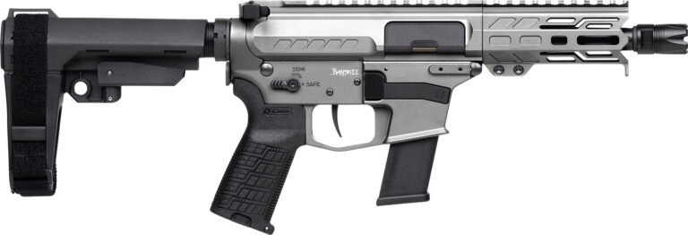 CMMG 45A150FTNG Banshee FE MkG 45 ACP 13+1 5″ Black Nitride Threaded Barrel, M-LOK Handguard, Titanium Cerakote Aluminum Receiver w/Picatinny Rail, Black Polymer CMMG RipBrace, CMMG Zeroed Grip