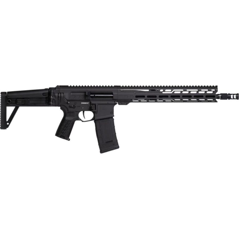 Available in a variety of custom Cerakote finish options; the rear of every DISSENT rifle features the DISSENT side folding stock with adjustable length of pull and adjustable cheek riser. A forward non-reciprocating charging handle allows for quick and easy manipulation without coming off target and the M-LOK handguard with top picatinny rail provides ample mounting space for whatever accessories you please.