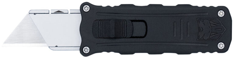 CobraTec Knives is excited to introduce to you our newly engineered and designed OTF side button utility knife. It is a versatile and innovative cutting tool designed for a wide range of tasks. This type of knife is characterized by its unique opening mechanism, where the blade deploys and retracts out of the front of the handle by activating the switch. This OTF utility knife is constructed out of 6061-T6 aluminum. All interior parts are 100% CNC machined for a precision fit and operation. The blades are interchangeable by simply pushing the spring loaded blade lock sideways on the designated arrow on the carrier to remove and install standard box utility blades. The clip is designed for right hand carry.