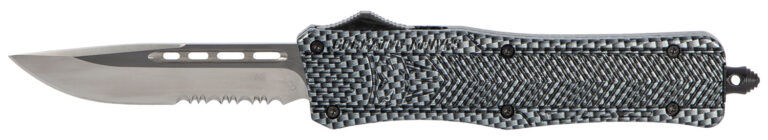 CobraTec Knives MSCFTK1MDS CTK-1 Medium 3″ OTF Drop Point Part Serrated D2 Steel Blade/ Carbon Fiber Aluminum Handle Features Glass Breaker Includes Pocket Clip
