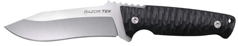 This knife was designed to fill a variety of tasks. Primarily intended for an EDC knife for this that prefer a fixed blade over folder. The textured scales and jimping on the spine offer a secure grip. The blade shape is diverse and can be used for self defense, Bushcraft, field dressing of small game, and other light chores. Includes Secure-Ex sheath that offers several carry options from neck to belt, and the ability to lash to a pack.