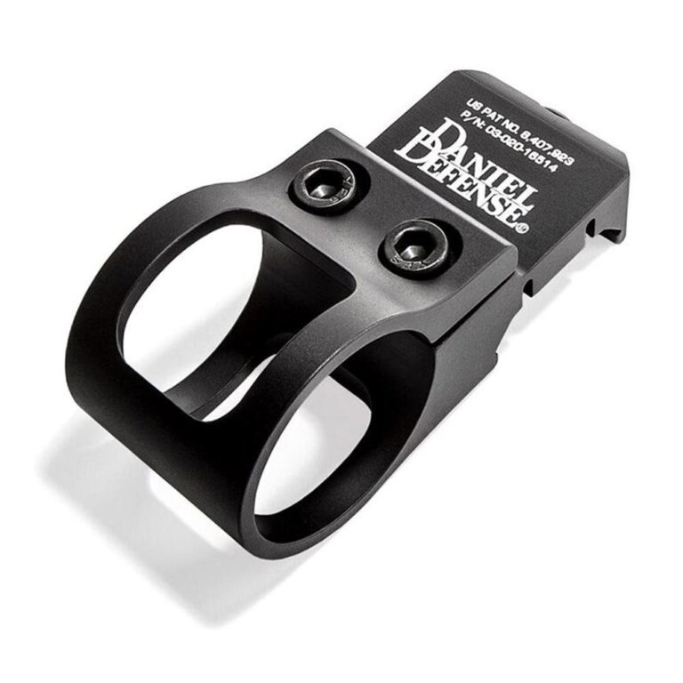 The Daniel Defense Offset Flashlight Mount is designed for use in conjunction with a vertical foregrip which is mounted on the bottom rail. The Offset Flashlight Mount may then be mounted on either side rail for ambidextrous use. It is designed so that as the shooters forward hand grips the vertical foregrip his thumb has quick and perfect access to the rear button of his flashlight. This setup eliminates many accidental light discharges because although the action to the on/off button is quick and natural it is also deliberate. Precision CNC machined from a block of 6061 T6 Aluminum and Finished in Hard Coat Type III Mil-Spec Anodized Black for a rock hard lasting finish.