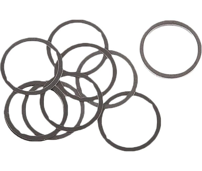 The Dead Air Shim Kit for barrels with 5/824 threads is composed of three different shim thicknesses. The graphic on the packaging details the thicknesses and identifying features of the shims included with the kit. Always place the thickest shim(s) on the barrel first.