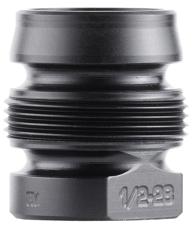 The Xeno Xero threaded taper mount is a muzzle device that gives a lightweight minimalist mounting option offering non-negotiable repeatability and a solid return to zero. All this while still delivering the durability expected from a Dead Air mount. The shorter size decreases its entrance into the blast chamber, maximizing sound performance and minimizing overall weight. The Xeno Xero is compatible with all Dead Air Xeno Adapters. The 1/2-28 Xeno Xero has a bore size to fit 9mm and smaller projectiles. The 5/8-24 Xeno Xero has a bore size to fit .46 and smaller diameter projectiles.
