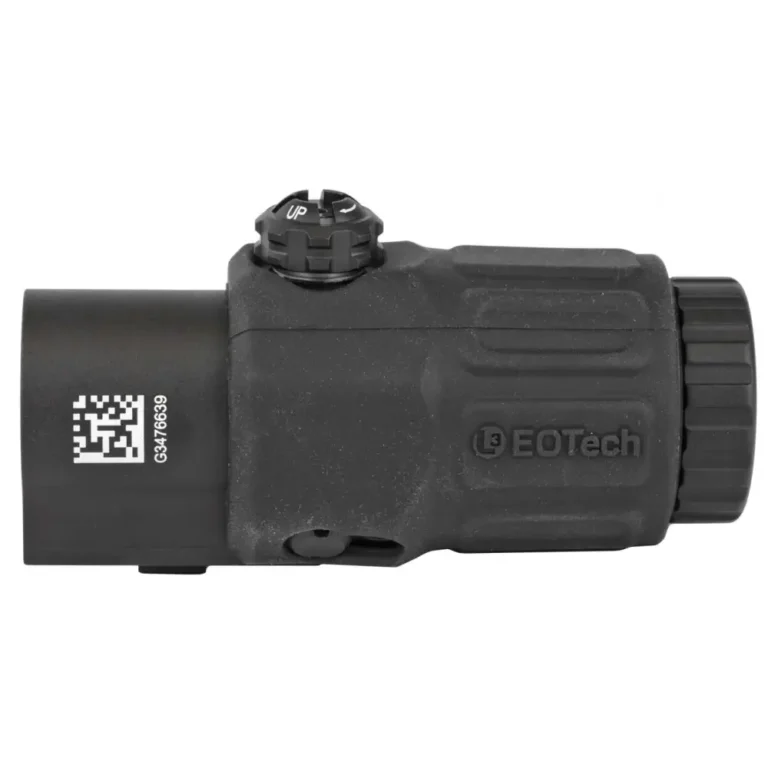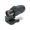 The G33STS from EOTech is a Gen III Magnifier with a Switch to Side (STS) mount, tool-free azimuth adjustment and an adjustable diopter for precise focusing. G33 is shorter and lighter than the G23, with an improved mount for faster 3x to 1x transitioning and a larger field of view. It is fogproof, temperature rated for -40 to +160 degrees F, and waterproof to 10 meters. The Quick STS mount twists the magnifier out of the way for shorter range shots, locking in that position until pushed back into place for magnified viewing.The G33 also offers a locking, quick detach lever for the optic and the mount. It aligns with standard-height sights, and comes with a 7mm riser to accommodate raised sights.