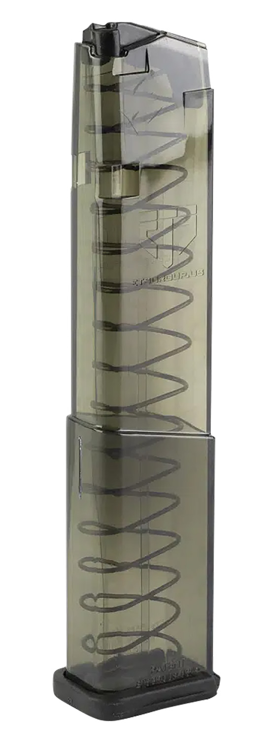 The ETS pistol mag is constructed of an extreme impact resistance advanced polymer with superior heat, cold and UV resistance, translucent body, and is creep resistant which means the feed lips and body won’t spread when being stored long term even when fully loaded. This mag features an easy disassembly with ETS’s specially designed base plate and is also designed to be compatible with Glock extensions. The ergonomically designed floor plate makes it easy to grab from mag pouches.