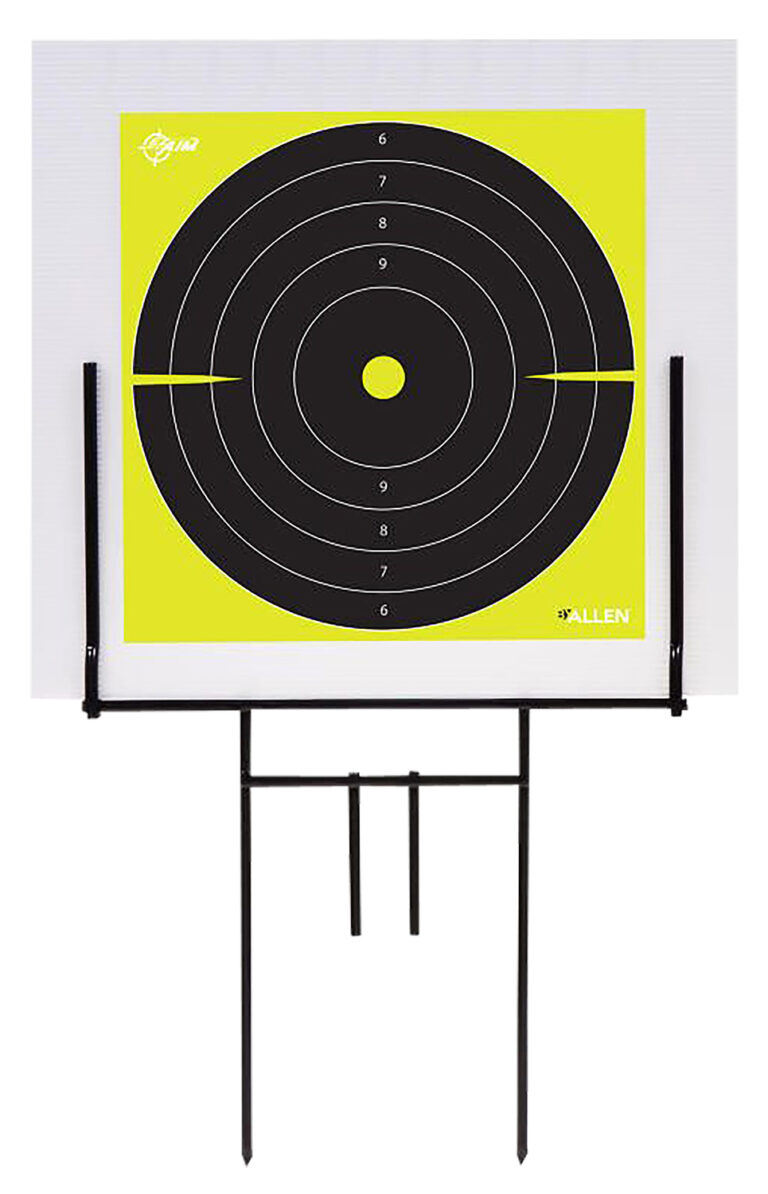The EZ Aim Portable Range Target Stand features a steel framed stand and coroplast board, for applying standard paper targets, or our EZ Aim paper shooting targets, providing you the tools needed to sharpen your skills. Lightweight, portable target stand can be used almost anywhere by simply pushing the frame into the ground and is designed to adapt for use with the EZ Aim Custom Target System. This range target stand ensures you have what you need to challenge your abilities as well as your imagination. Get creative and stay on target with EZ Aim.