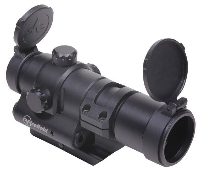 With an integrated red laser for lightning fast target acquisition, the Firefield Impulse 1×28 Dot Sight with Red Laser brings Victory to your close-quarters pursuits. Ideal for target shooting and hunting on rifles and shotguns, this compact parallax corrected sight features a cantilever mount design, allowing it to be forward mounted for use with a magnifier. Thanks to a strong aluminum construction, the Texas designed Impulse handles up to .50 caliber recoil and is shockproof, fog proof and IPX5 weatherproof. One AAA battery powers the sight and laser, achieving 14.2 hours of continuous use with both the laser and reticle turned on. The laser is measured at 1.5 MOA at 100 yds. Laser is controlled by side mounted digital push button switch. Hand adjustable windage and elevation along with a light weight of just 10.9 oz. add to Impulses user-friendly design.