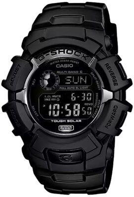 From G-SHOCK in its pursuit of toughness, this model from the GA-110 series features a big powerful face. Black is used as the main G-SHOCK-like color to express more strength. Equipped with a millisecond stopwatch, a speedometer, and JIS class-1 magnetic resistance. Small three-dimensional cog-shaped parts are assembled on the dial, which fuses analog and digital displays and features shiny silver indices that make the design stand out more sharply.