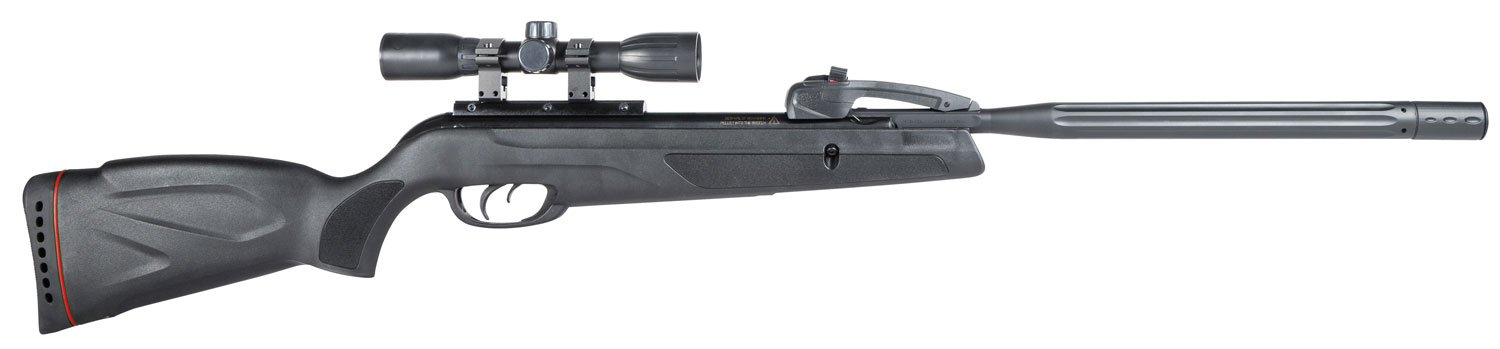 The GAMO Swarm Whisper pellet rifle features 10X Quick-Shot technology that utilizes a 10-round rotary-style magazine, providing faster loading for repetitive shooting. Features Whisper noise dampening technology; fluted polymer jacketed steel barrel; rubber recoil pad; non-slip texture on grip and forearm and a 4×32 shockproof scope with rings.
