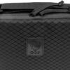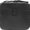 -Adjustable carrying strap on the top of the bag, which is covered w/ diamond pattern nylon
