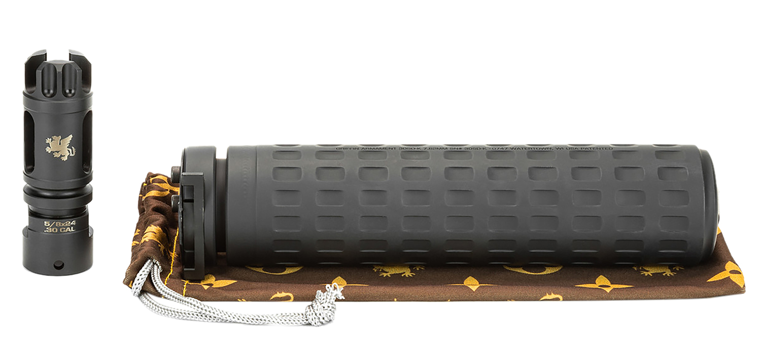 The Griffin Armament 30SD-K was born from multi-level customer feedback that reported the desire for a shorter .30 caliber QD silencer. Pursuing maximum performance, the design team incorporated Griffin Armament’s patented HEDP Baffle technology. A 30SD Muzzle Brake mount is included.