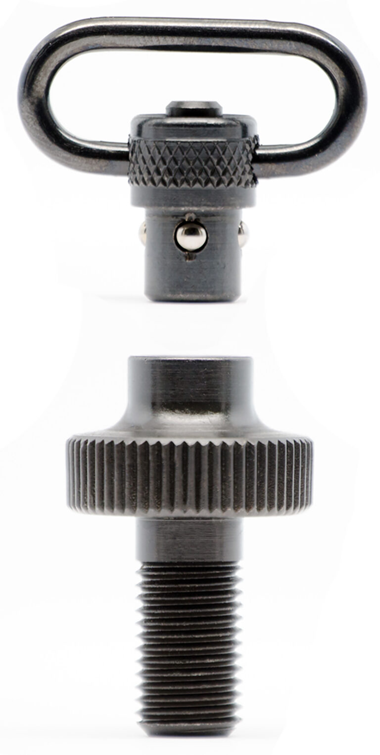 Standard mag cap replaces factory cap and allows the use of any GrovTec push button swivel or even the multi-adaptor for speed and versatility in the field. Each set includes one 12 gauge mag cap and one standard 1″ loop push button swivel.