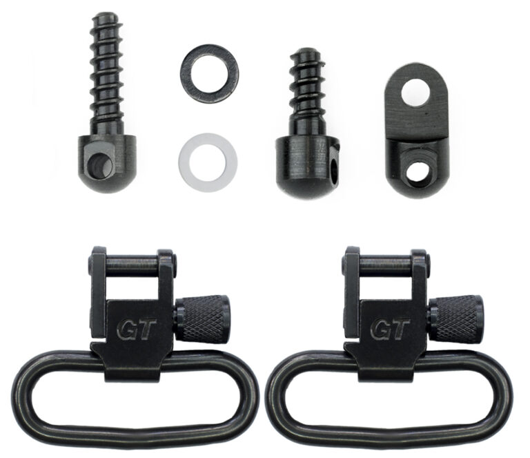 Packaged with both fore end adapter to fit 10/22, .44 mag and No. 3 carbines. 1/2″ wood screw suitable for fore end stock mounting. Includes 3/4″ rear wood screw swivel stud with spacers and two 1.25″ Locking Swivels.