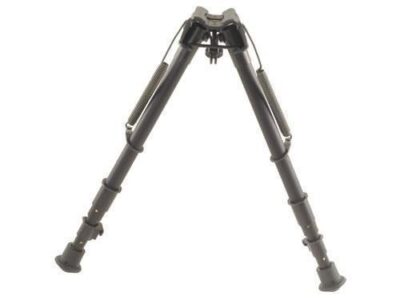 Harris bipods clamp to most Q.D. stud equipped bolt action rifles and have a sling attachment provision. Spring loaded folding legs are quickly adjustable for height. Manufactured with heat treated steel and hard alloys, bipods have a black anodized finish.