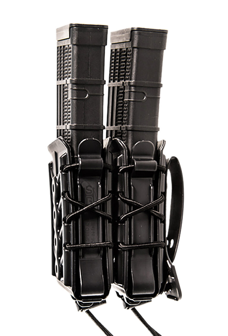 This line of polymer TACOs functions much the same as their nylon counterparts. The body and brackets are made with a durable and flexible, proprietary polymer and are laced together with a bungee cord. As with the originals, these pouches grip and retain a wide variety of magazine styles and calibers. It mounts to both MOLLE and belts up to 2″ with High Speed Gear’s universal HSGI Clips, has a pop lock configuration that orients excess bungee down and out of the way, and features grommets for drainage.