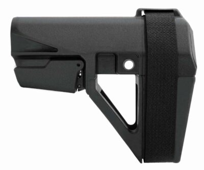 The AR OverMolded collapsible buttstock features rubber friction fit for an anti-rattle design which prevents movement. It utilizes a shielded operation lever and swivel mounting positions. This model has a black finish and is compatible with commercial buffer tube.