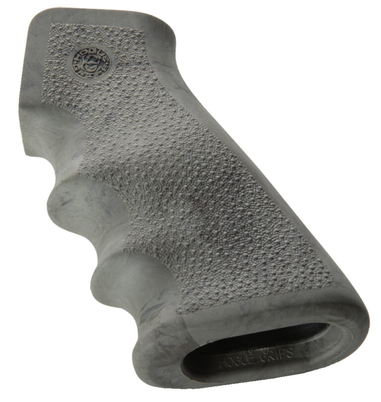 Hogue rubber grips are molded from durable synthetic rubber that is not spongy or tacky, yet provides a soft recoil absorbing feel without affecting accuracy. The flexibility of the materials and molding process produces rubber grips with features that out perform all other makes. It is molded with a reinforcing insert directly engaging with the firearm frame for a rock-solid grip-to-frame fit. The Cobblestone texture provides an efficient non-slip, non-irritating stippling pattern. This model has a Ghillie green finish and is compatible with AR-15.