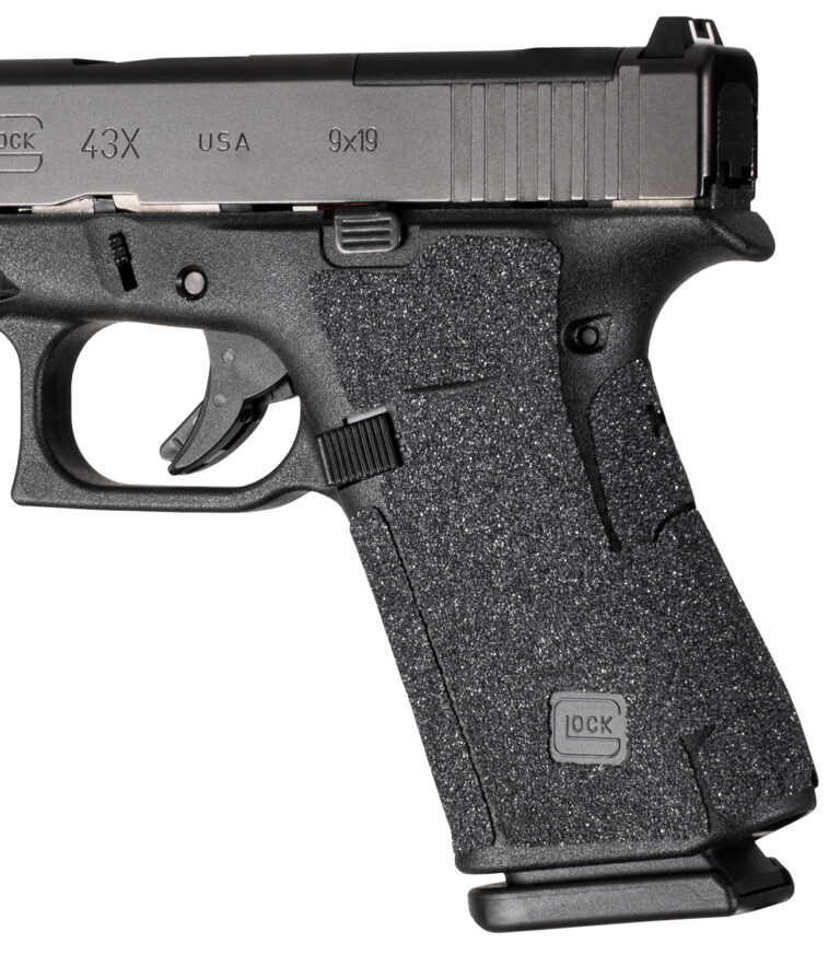 Heavy grit feel. Ultra thin profile – 30% thinner than a standard credit card. Engineered to conform to the exact contours of your firearm’s frame. Multi-piece design provides optimal coverage. Left-over remnant material offers multiple customization options. Precision fit for GLOCK 43X, 48