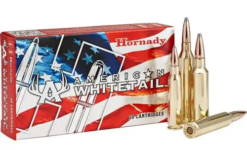 Opening day of deer season comes only once a year. Make sure you’re ready when the big one steps out and load-up with Hornady American Whitetail ammunition. The InterLock bullet features exposed lead tips for controlled expansion and hard-hitting terminal performance. Its pioneering secant ogive design and exclusive InterLock ring helps keep the core and jacket locked together during expansion to retain mass and energy. The American Whitetail utilizes the highest quality cases and primers available for optimum pressure and consistency.