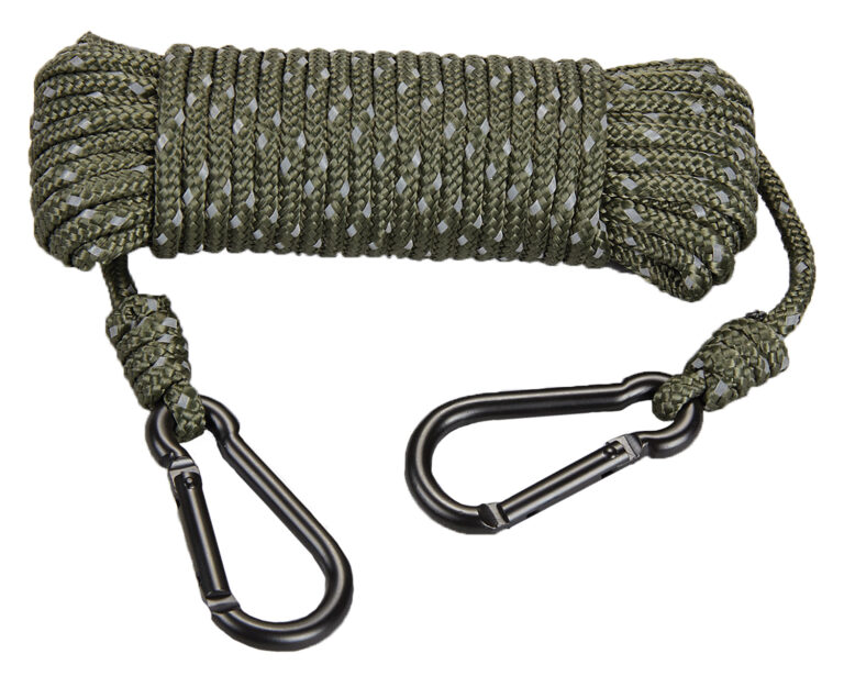 Hunters Specialties 30′ length of strong, large-diameter cord features reduced memory to prevent coiling and knotting when hoisting hunting gear into your tree stand. Heavy-duty carabiner clips on both ends are quiet and non-marring. Reflective material is woven into the dark fibers, making it easy to spot when walking to your stand in the dark.