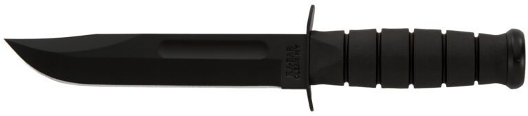 Ka-Bar’s full-size Fighting/Utility knife with a black blade. A practical, all-purpose utility knife featuring Kraton G ergonomically designed slip-resistant handle. Serves every task perfectly. Tang stamped USA. Leather sheath included. Made in the USA.