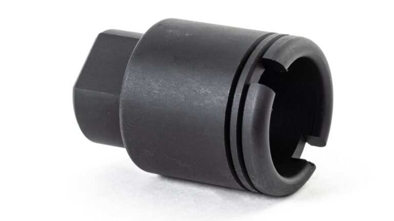 Similar to the standard “Flash Can” but smaller diameter to fit inside slim rail systems. Bore will clear up to and including 45 and 458 projectiles.