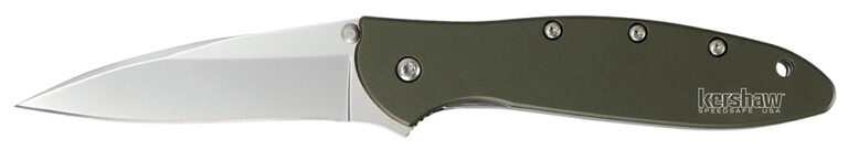 Kershaw 1660OL Leek 3″ Folding Drop Point Plain Bead Blasted 14C28N Steel Blade Olive Drab Anodized Aluminum Handle Includes Pocket Clip
